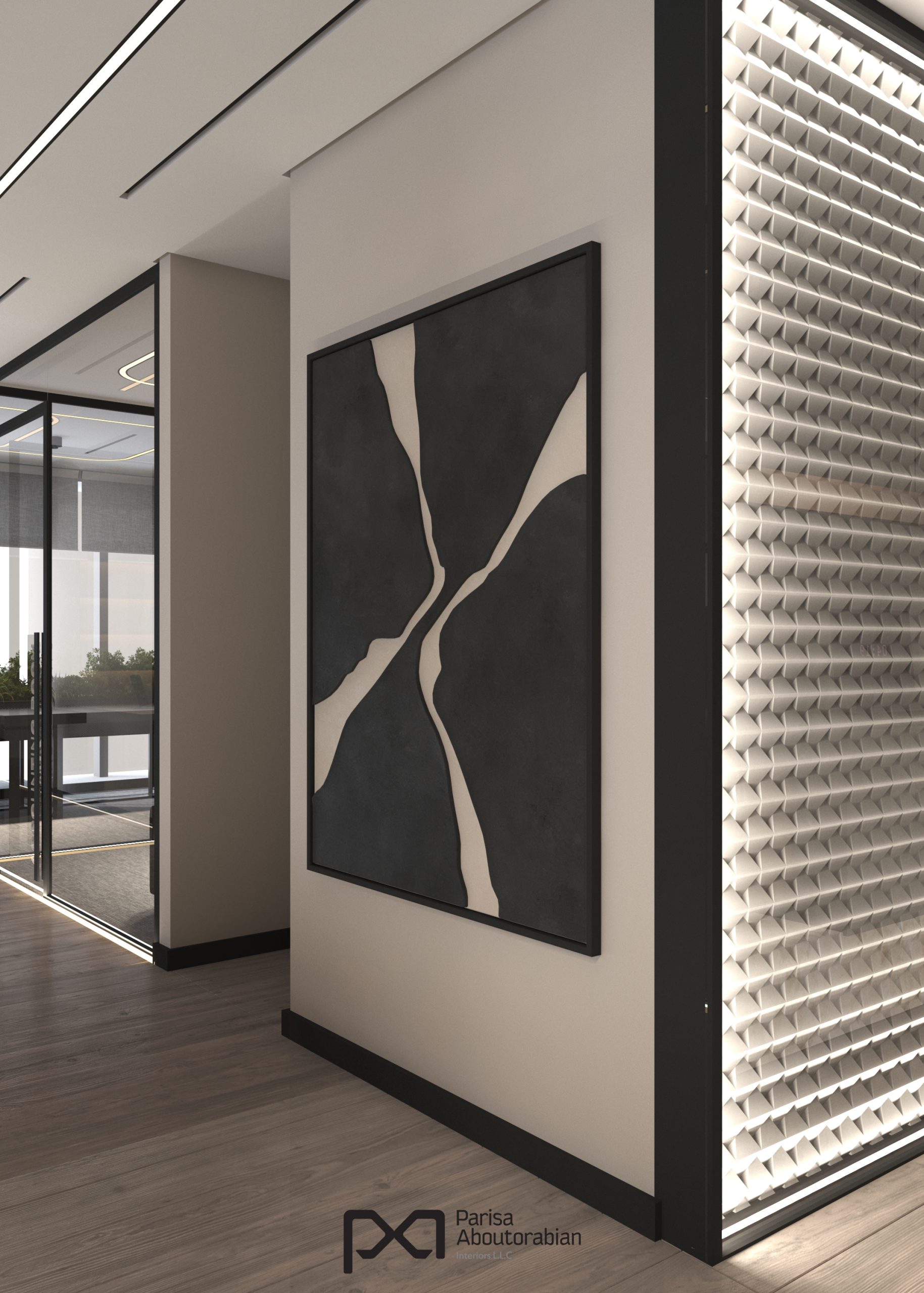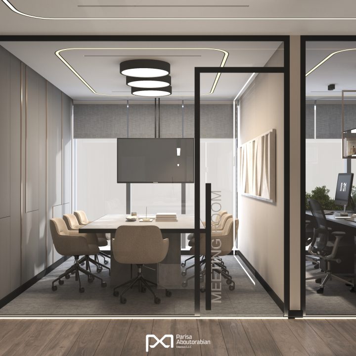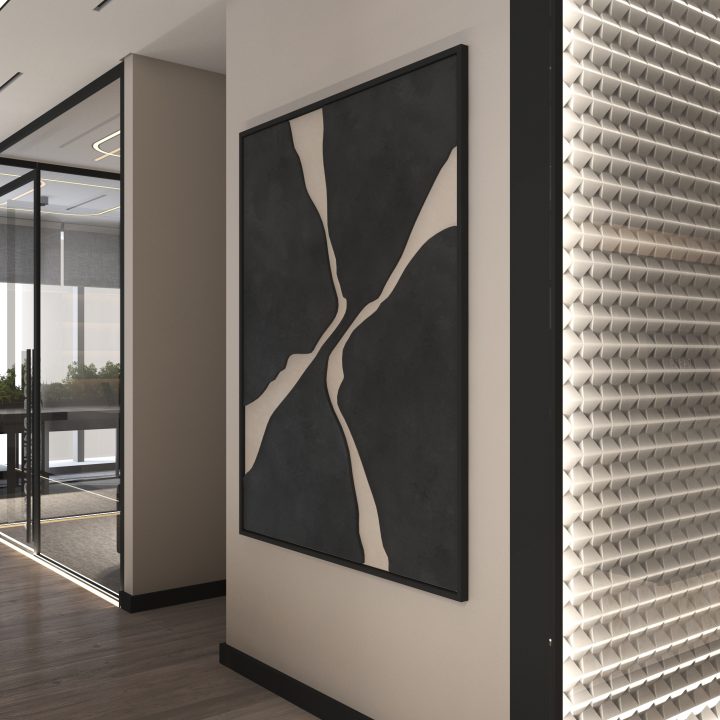 In our second office project in Citadel Tower, we elevated the design with a refined palette of beige and gray tones, introducing sophisticated materials and bespoke details. This updated space embodies understated elegance while maintaining a functional and inspiring atmosphere. Thoughtfully curated to reflect a matured brand identity, the design fosters a calm, contemporary workspace that prioritizes comfort, focus, and timeless style.